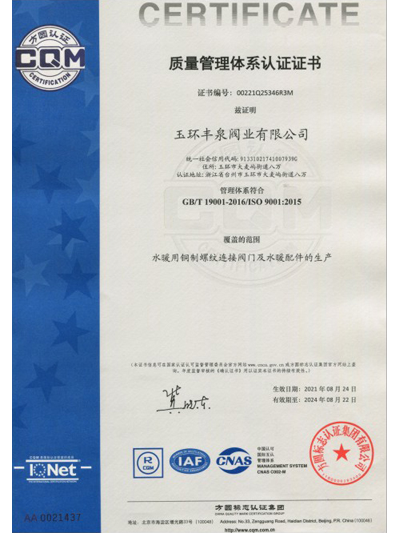 玉環豐泉閥業有限公司坐落于閥門之都 - 浙江玉環,是一家集研發、設計、生產、銷售服務于一體的綜合性公司。公司地處浙江東南沿海,緊靠國家二類港口大麥嶼港,離臺州機場58公里,離溫州機場30多海里,交通十分便利。公司創建于1988年,專業生產銅制閥門、水暖配件及管件;產品廣泛應用于太陽能、冷熱水、煤氣管件及采暖等建設項目...